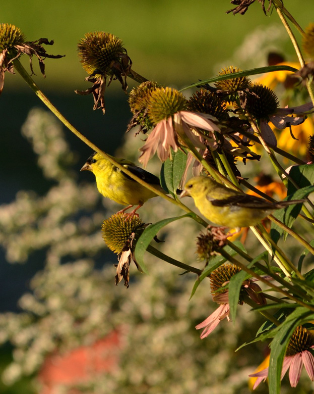 Allow dried flower heads of some of your garden favorites to stay standing in your garden as a food resource. The dark stems and flower heads of some of our native flowers look gorgeous against the snow and nothing is more exciting than seeing our small, winged friends feasting upon the seed heads.